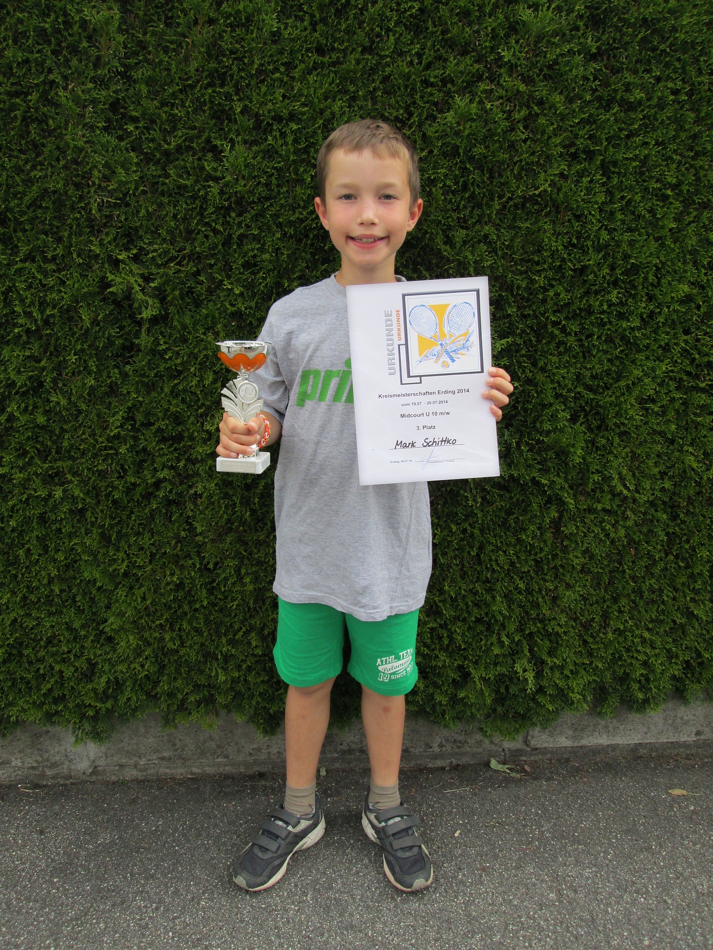 Mark Schittko hat heuer bei den Jugend Kreismeisterschaften am 19.07.2014 in der Altersklasse "U10 Midcourt" den hervorragenden 3. Platz erreicht. Herzlichen Glückwunsch!